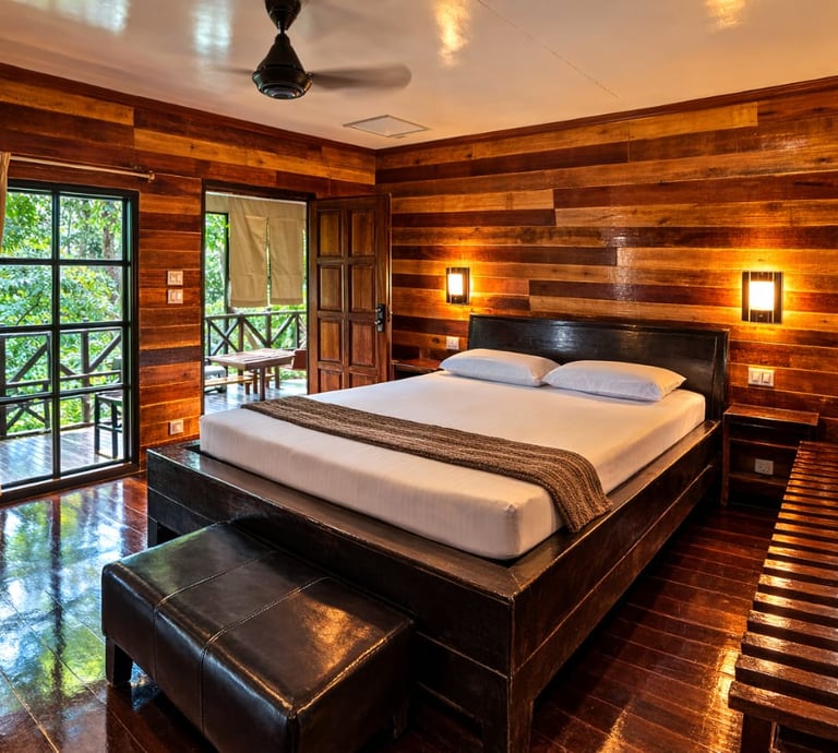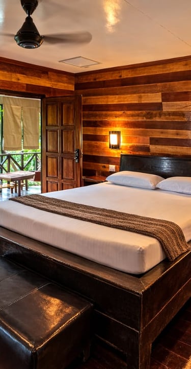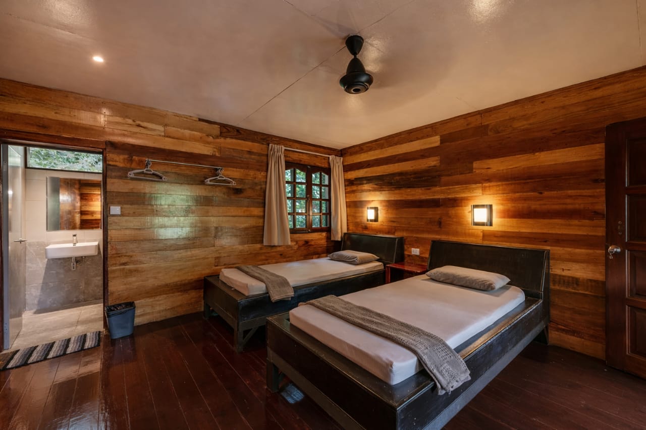 Cozy cabin nestled among the trees, perfect for guests wanting an intimate nature retreat with all comforts, with minimalist decor, our guests can be assured a space to relax while soaking up the jungle views.